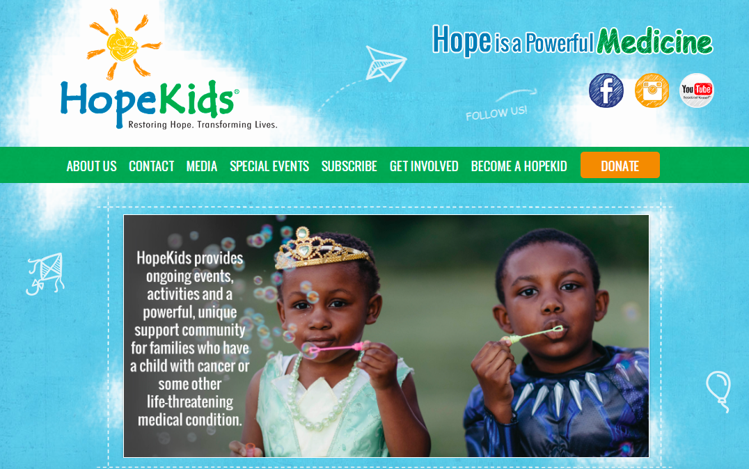 HopeKids provides ongoing events, activities and a powerful, unique support community for families who have a child with cancer or some other life-threatening medical condition. They surround these remarkable children and their families with the message that hope is a powerful medicine.
